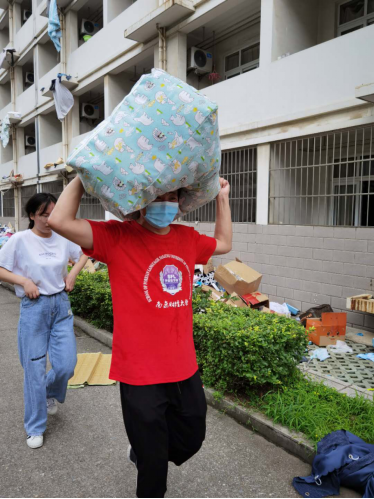 青年教师洪忠婷一直坚守在第一线,不仅搬运行李,还到宿舍为滞留在北京未能回校的毕业生收拾、打包所有行李,细致入微。