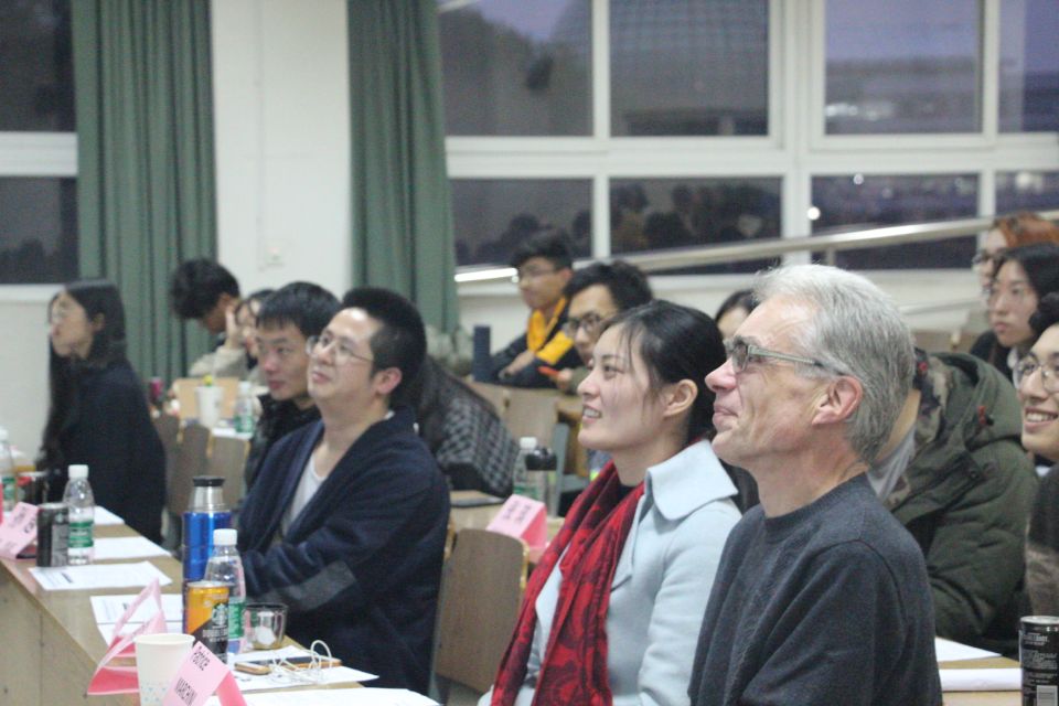 法语外教Patrice讲述了法国诗歌与歌曲的演变,由16级吴剑星(Raphaël)同学和17级王蔓(Léa)担任现场翻译。