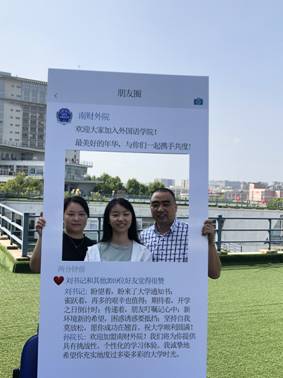新生和家长用“朋友圈相框”拍照留念