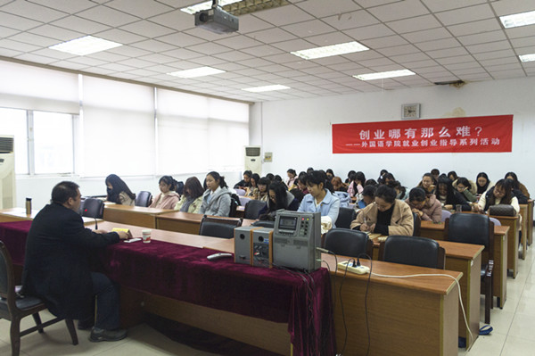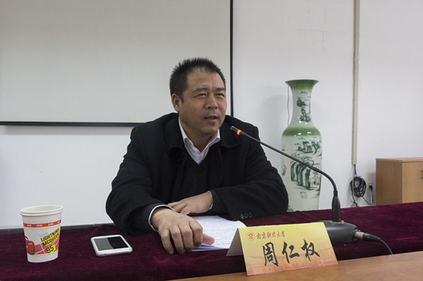 11月30日下午,江苏和谐动力集团有限公司党委书记、董事长,“感动南京”2016年度人物周仁权应邀为我校学子做了题为“创业哪有那么难?”的讲座,讲座在德正楼308举行。讲座由体育直播平台 党委书记刘浩主持,外语体育直播平台 部分学生聆听讲座。