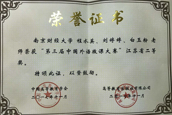 近日,第三届中国外语微课大赛复赛圆满结束,体育赛事直播 英语系程水英、刘婷婷、白玉粉老师荣获江苏省二等奖,法语系嵇晔老师荣获江苏省三等奖。