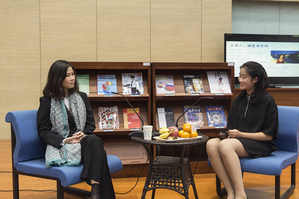 会议最后,在场同学踊跃提问,顾晨瑶老师一一回答了同学们的问题。顾晨瑶老师曾任国际劳工、FAO等联合国组织大会翻译工作,有丰富的同传、交传工作经历。20余年的国外生活与跨文化交流的工作环境,使得顾老师对各国文化礼仪也颇有实践心得。(文:陈林炯)