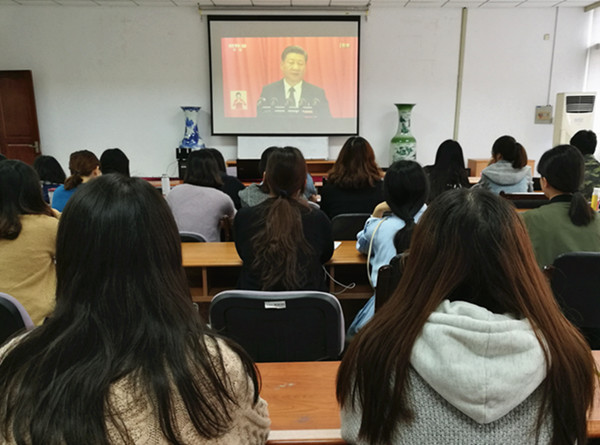 10月18日上午九时,中国共产党第十九次全国代表大会在北京人民大会堂隆重召开,习近平同志代表十八届中央委员会向大会作报告。体育赛事直播 当天上午没有课程安排的师生在德正楼308会议室集体观看了会议开幕式盛况。