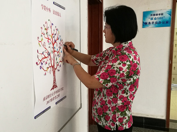 在迎新现场,体育直播平台 特意为新生准备了四重礼,祝福新生开启人生新阶段。第一重礼是体育直播平台 精心布置的富有创意的大型火车票,上一站青春,下一站南财外院,寓意在最美的青春时节,在南财外院开启人生新篇章。第二重礼是体育直播平台 在迎新现场引导全体2017级新生“栽种”希望之树,在希望之树的“栽种点”按下全体新生的手纹印,绘制成一棵希望之树,这棵“希望之树”将悬挂在体育直播平台 走廊,陪伴全体2017级新生度过他们宝贵的四年时光,见证学子的成长。第三重礼是体育直播平台 送给新生的一封信,附上阅读推荐书目和学长学姐精心设计的印有中英文双语中国传统诗词的书签,引导新生读书开启未来,学习外语更不能丢掉传统文化。第四重礼是在外院爱心墙前组织为新生及家长拍摄全家福的活动,并倡议新生“爱要大声说出来”,引导新生向父母大声说出“我爱你”,纪念大学入学这一特殊的时刻。来自江苏教育电视台的记者也在现场记录下了这一温馨画面,并以《同学,开学见面“四重礼”请收好》为题在9月9日当天的《江苏教育新闻》中播出,荔枝新闻APP也同步刊发。