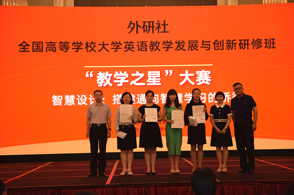 肖辉院长为外研社全国高等学校大学英语教学发展与创新研修班“教学之星”大赛获奖者颁奖