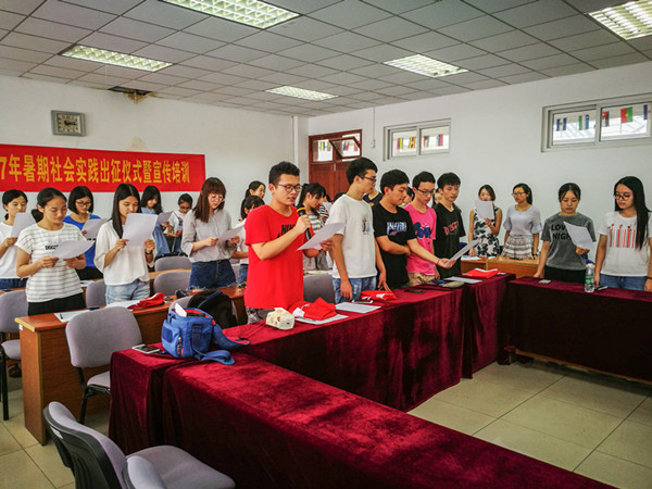 出征仪式上,学工办主任薛桂芳宣读了2017年体育直播平台 暑期社会实践立项团队名单和资助情况,并就财务报销要求对实践团队进行指导;潘华老师对全体团队成员进行安全教育,希望团队能牢牢谨记“安全第一”的思想,始终把安全工作放在首位,各团队队长签署了安全协议书。