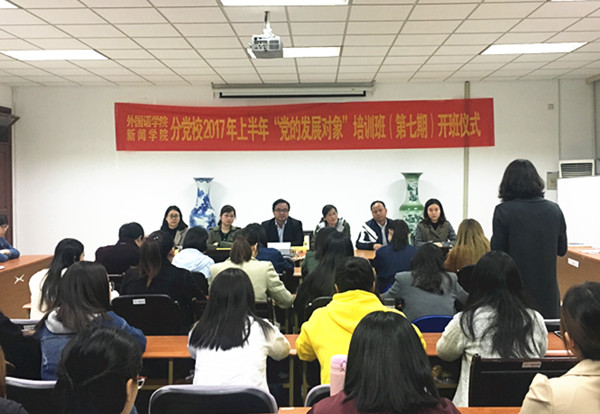 4月7日晚,体育直播平台 、新闻体育直播平台 分党校联合开办的第七期“党的发展对象”培训班在法政学科楼308会议室举行了开班仪式暨第一讲。体育直播平台 党委书记刘浩、新闻体育直播平台 党总支书记周亚芳,体育直播平台 党委副书记李慕原,新闻体育直播平台 党总支副书记高永东,外国语本科生党支部书记薛桂芳,新闻体育直播平台 本科生党支部书记孙启出席了本次党校开班仪式。开班仪式由体育直播平台 党委副书记、党校副校长李慕原主持。经过多方面的考察和遴选,体育直播平台 和新闻体育直播平台 的74名同学成为本期党校学员并参加了开班仪式。