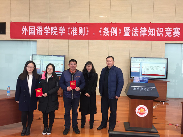 12月15日中午,体育直播平台 学《准则》、《条例》暨法律知识竞赛在图书馆四楼世界之窗举行。校党委副书记、纪委书记焦富民,校党委宣传部部长韩力争,机关党委书记孙彬、体育直播平台 全体党政领导、体育直播平台 各党支部书记、全体党员和部分学生代表出席了本次比赛。