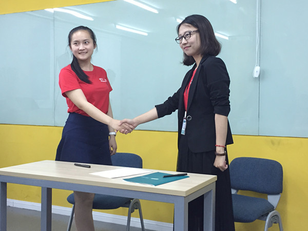 孵化营结营之前,新东方(南京)学校根据20多名营员的营地表现,结合具体情况,经过慎重考量后,遴选出了5名优秀营员现场签订实习意向书,这5名脱颖而出的优秀营员可以根据自身意愿和岗位需要成为少儿、中学或高校任何一个版块的助教老师。同时,也可以享受到新东方的晋升通道,根据自身后期表现成为正式教师、甚至进入管理层。在结营仪式上,体育赛事直播 和新东方南京学校共同为所有受训营员颁发了结业证书。