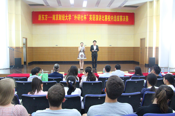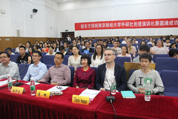 5月26日晚,历时一个多月的“外研社杯”全国大学生英语演讲大赛南京财经大学选拔赛决赛在管理学科楼二楼报告厅顺利举行。本次比赛是我校“传承文明拥抱世界”第十三届外语文化节的子活动,由体育直播平台 和国际教育体育直播平台 承办。校教务处处长陆华良、国际合作与交流处、国际教育体育直播平台 院长黄能、体育直播平台 院长肖辉、体育直播平台 党委书记刘浩、外教Timothy Hampson以及新东方教育培训学校朱莹莹担任了此次决赛的评委。