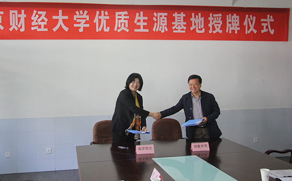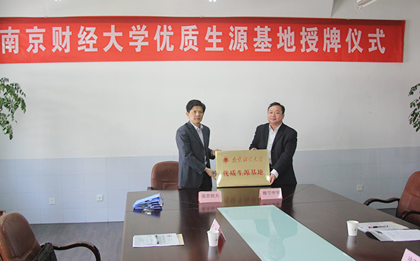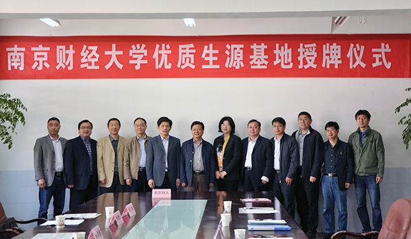 邱伟芬副校长分别与五所中学的校领导签订“优质生源基地”合作协议书,宋学锋校长向五所中学代表分别授予“南京财经大学优质生源基地”铜牌。