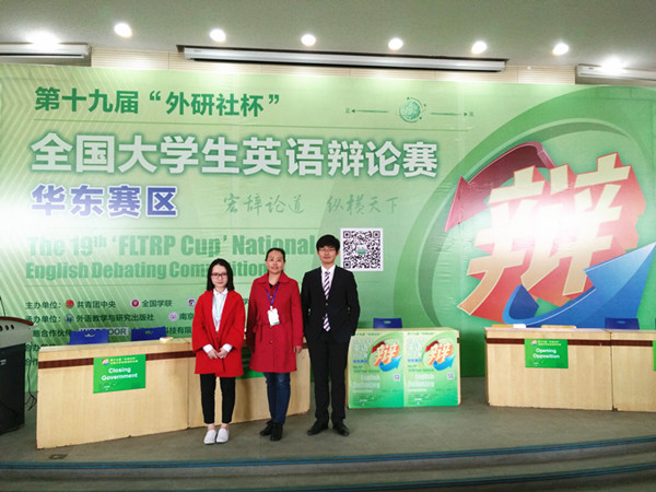 此次华东赛区决赛吸引了华东六省一市包括复旦大学、南京大学等在内的105支高校队伍,200多名选手参赛。经过前期的校内初赛选拔和培训,我校派出了由外语体育直播平台 陈芙蓉副教授作为指导教师,邵帅和陈轶梵为辩手的参赛团队。在赛场上,我校的两位参赛选手就教育、两性平等、国际时政和转基因食品的相关话题与来自其他高校的选手同台进行了唇枪舌剑的论辩。辩题仅在赛前十五分钟发布,极其考验选手的知识储备、逻辑思维能力、语言水平及随机应变、临场发挥能力。正反方辩手用流利的英文、缜密的逻辑和幽默的口才把比赛推向一波波的高潮。经过3天5轮激烈的循环赛,我校两位选手最终过关斩将,获得华东赛区三等奖。