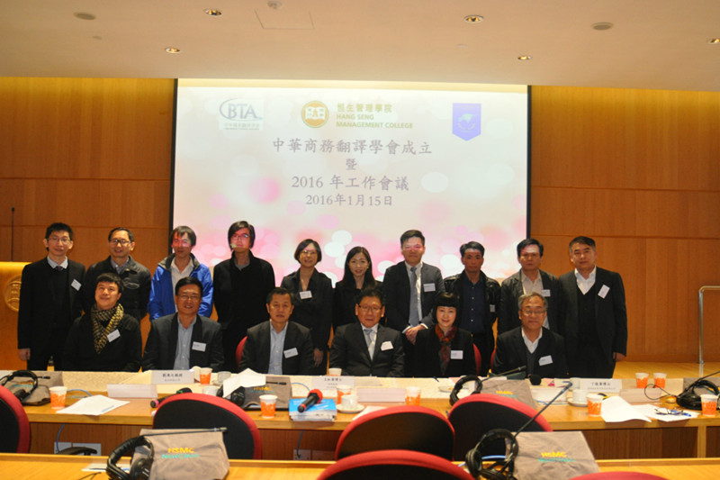 2016年1月15日,中华商务翻译学会成立和工作会议在香港顺利举行。会议由筹委会秘书长、学会发起人之一刘寒之教授主持。首先,作为本学会发起人之一的香港恒生管理体育直播平台 常务副校长兼翻译体育直播平台 院长方梓勋教授,向与会代表介绍了中华商务翻译学会发起的背景和历史。2012年在方教授的倡议下,恒生管理体育直播平台 同北京外国语大学高级翻译体育直播平台 联合在香港召开首次商务翻译高峰论坛;后来在对外经贸大学英语体育直播平台 王立非院长和南京财经大学外语体育直播平台 肖辉院长的支持下,又先后在北京和南京召开了第二、三次商务翻译高峰论坛。随着众多商务翻译领域学术活动的开展,很多从事商务翻译工作的有识有志之士逐渐形成共识,决定搭建一个全国性商务翻译研究平台和组织机构,从而决定正式注册成立中华商务翻译学会。
