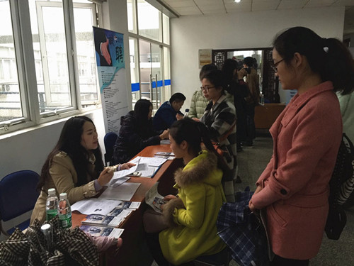 据悉,此次招聘会聚集了吴江市万隆纺织有限公司、好未来集团-励步英语、江苏高创投资发展有限公司、南京新航道英语等十家单位。提供外贸业务员,英语、法语教师,翻译等多个岗位。