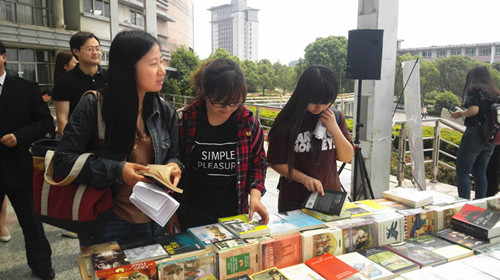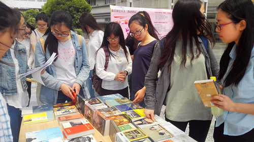 开幕式后,开展了“书香墨意”外文图书展,此次书展引进了近百种适合大学生阅读的外文原版图书,涉及外国文学和通俗经济读物等,倡导大学生与书为友,与文相伴。活动现场吸引了许多同学纷纷驻足欣赏自己感兴趣的外文图书。