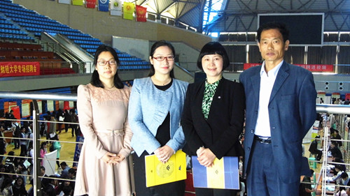 4月22日上午,我校2015年春季校园招聘会在仙林校区体育馆举行。体育赛事直播 院长肖辉、党委副书记李慕原、学工办主任薛桂芳及辅导员老师孟德明深入招聘会现场与用人单位和求职学生交流,了解外语类人才就业行情与用人单位需求。