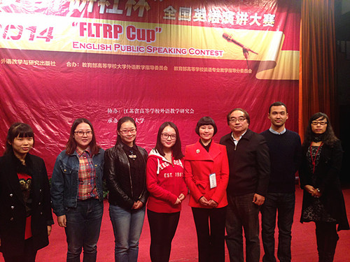 近日,2014“外研社杯”全国英语演讲、写作大赛(江苏赛区)决赛分别在苏州大学和南京林业大学落下帷幕,本次比赛分别吸引了来自全省七十余所本科院校的三百余名选手参赛。我校学子累计荣获一等奖2个,三等奖2个,优胜奖3个,体育赛事直播 左敏、文晶、程水英三位老师获得“优秀指导教师”奖项。此次我校参赛队伍由院党委副书记李慕原担任领队。