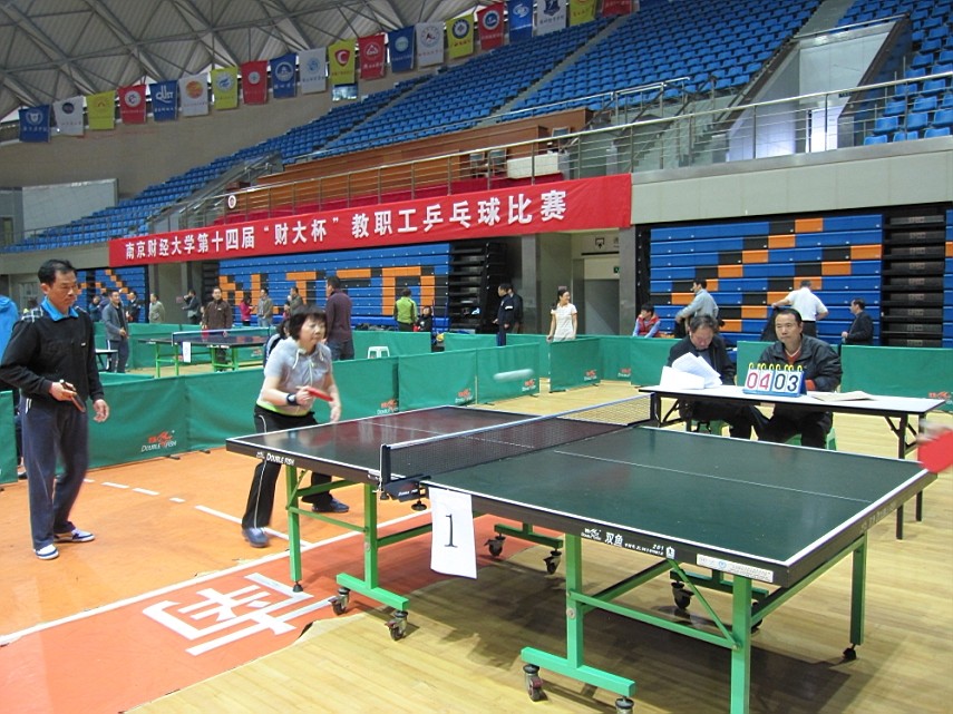 4月19日,我校仙林校区体育馆热闹非凡,掌声、喝彩声此起彼伏,由校工会主办、体育部协办的第十四届“财大杯”教职工乒乓球比赛在此举行。焦富民副校长出席开幕式。校党委副书记、副校长王建明,副校长许承明出席闭幕式。开幕式和闭幕式由校工会主席吕戎主持。