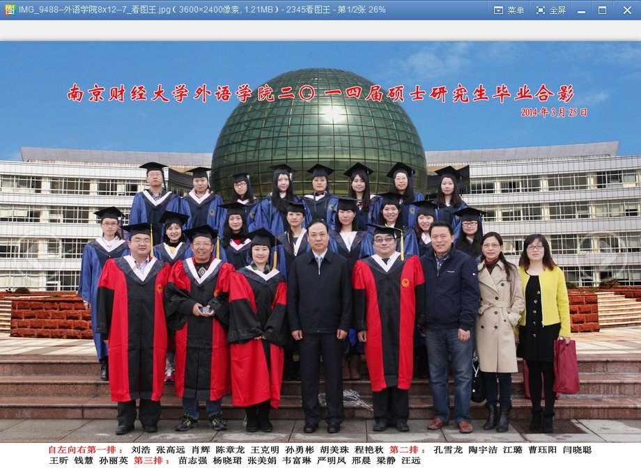 2014届硕士研究生毕业典礼暨学位授予仪式结束后,校党委书记陈章龙教授和体育赛事直播 师生亲切合影留念。