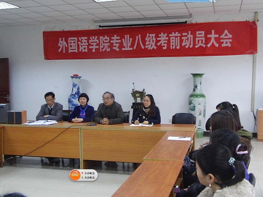 体育直播平台 于2014年3月19日中午在专三308召开了“体育直播平台 专业八级考前动员大会”。院长王克明教授、团总支书记金立林老师、辅导员孟德明老师及2010级全体学生参加,会议由党委书记肖辉教授主持。