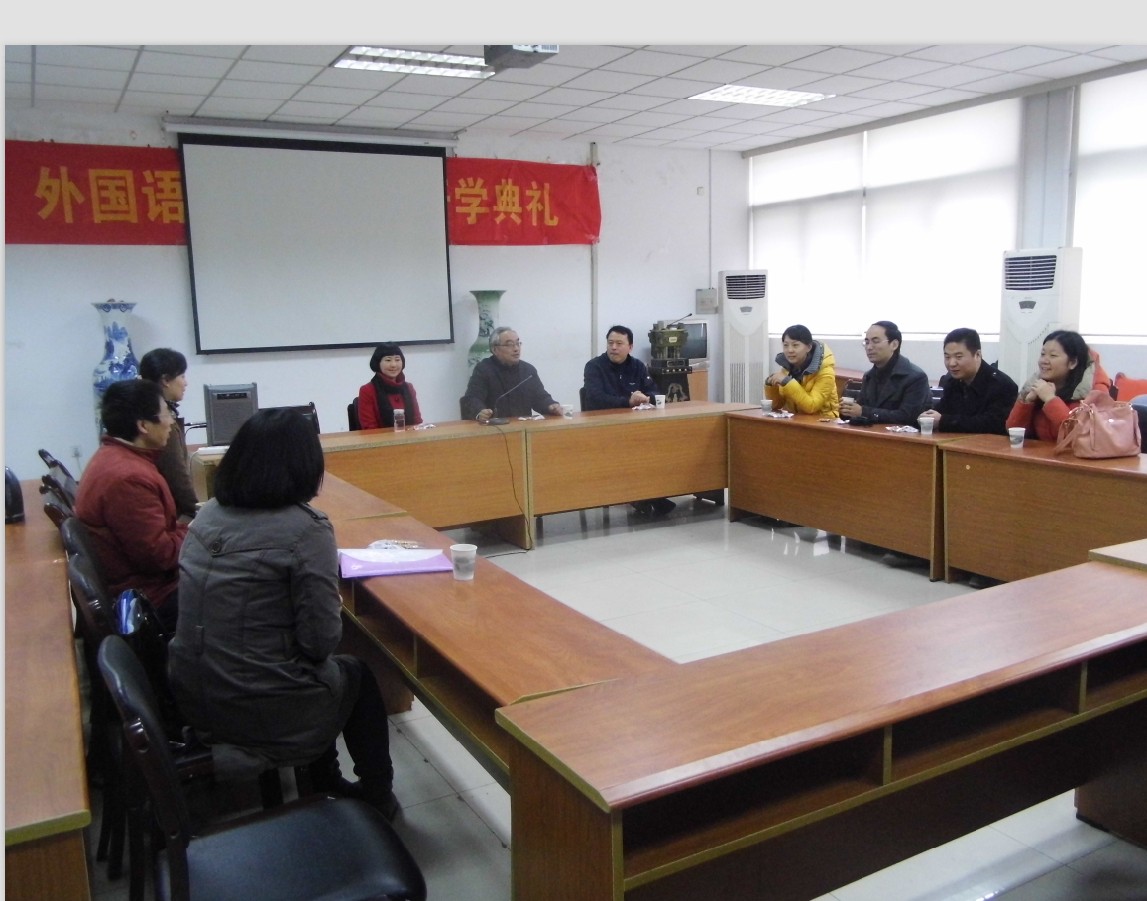 院长王克明教授、党委书记肖辉教授、副院长孙勇彬教授和实验室主任叶家泉、大学外语教研室副主任张媚参加了座谈。