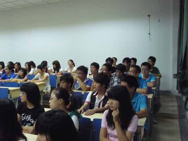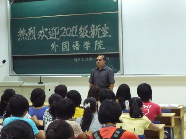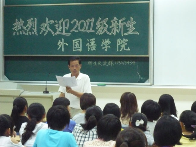 2011年体育直播平台 新生在9月4日全部安全顺利抵校,并于晚六点半在专3_308教室举行了新生第一次全体会议。院长王克明教授,党总支书记肖辉教授出席会议并发表重要讲话。出席会议的还有新生辅导员孟德明老师,新生班主任和外院学生会主席鲍秀秀以及部分学生会骨干成员。会议由肖书记主持。