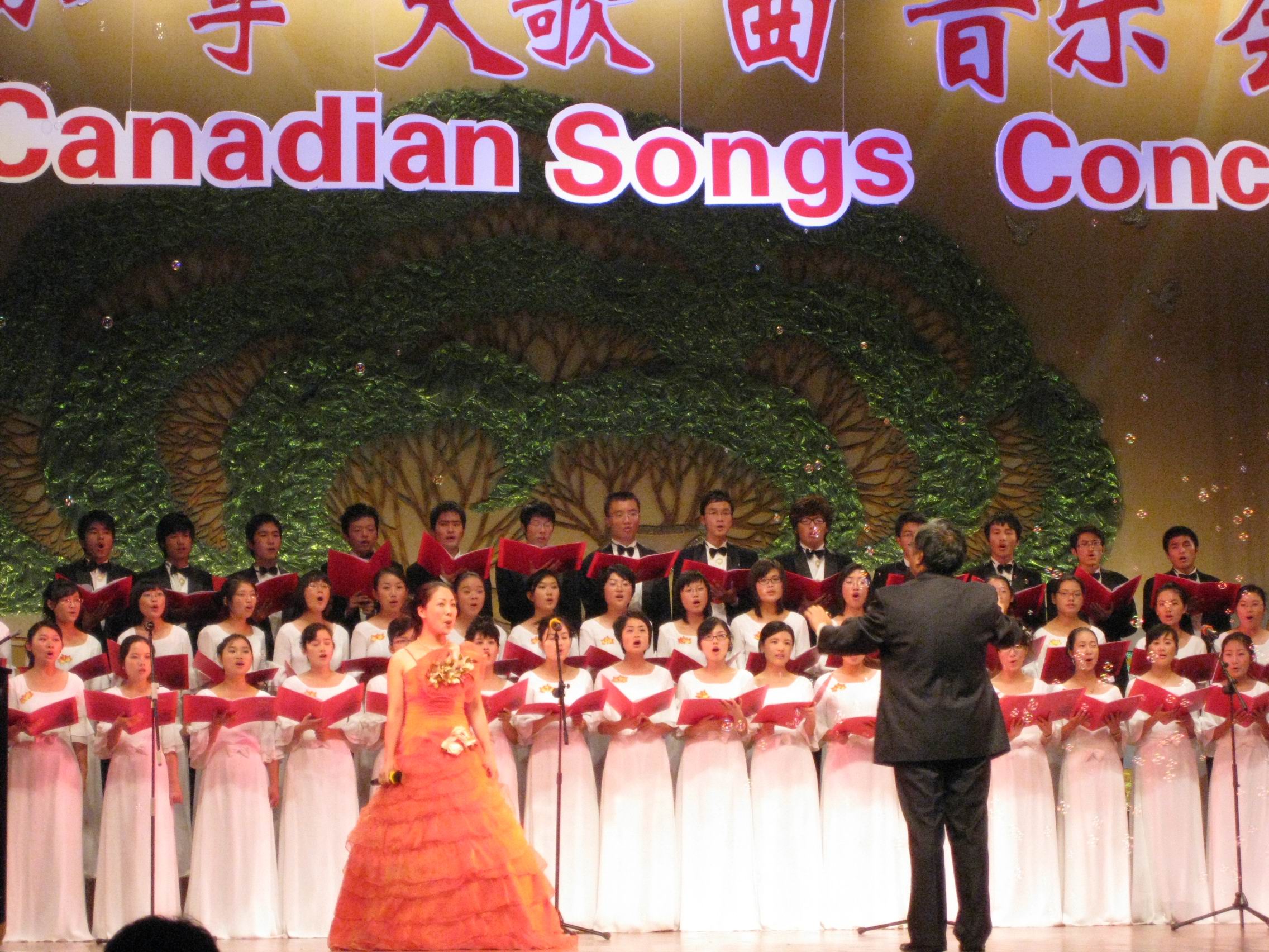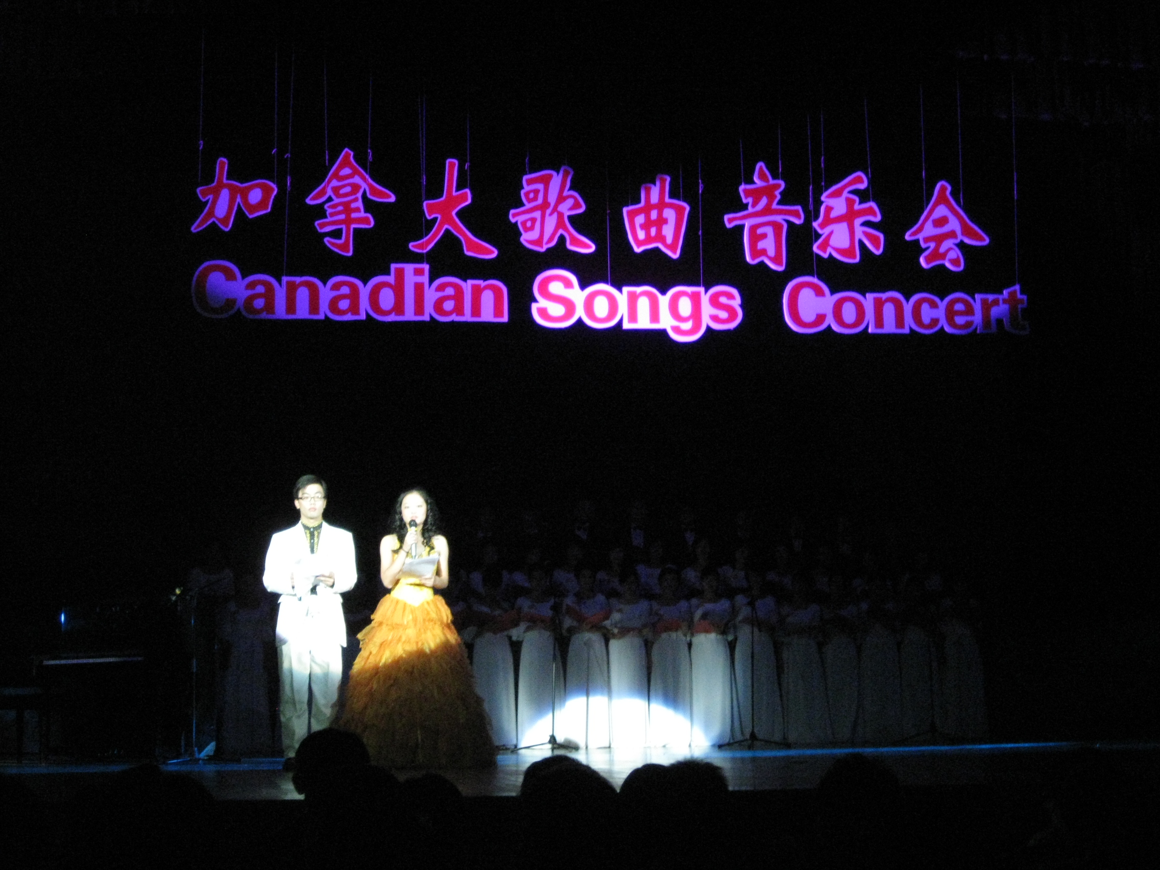 在演唱会上,外语系的同学以男女生合唱、女生小合唱和独唱形式演绎了九首加拿大歌曲和一首中国歌曲,如加拿大国歌“Oh,Canada”、“Lovely Land”等,南京财经大学外语系主任王克明教授也亲情出演。最后一曲由王克明主任担任指挥、金立林老师领唱的中国歌曲《茉莉花》将晚会的气氛推向了高潮。加拿大研究会第13届年会的主题“中国——加拿大的和谐发展”在此得到了完美体现。通过这个晚会,使学生对加拿大有了更深层次的了解、更进一步增进了中加合作和交流。