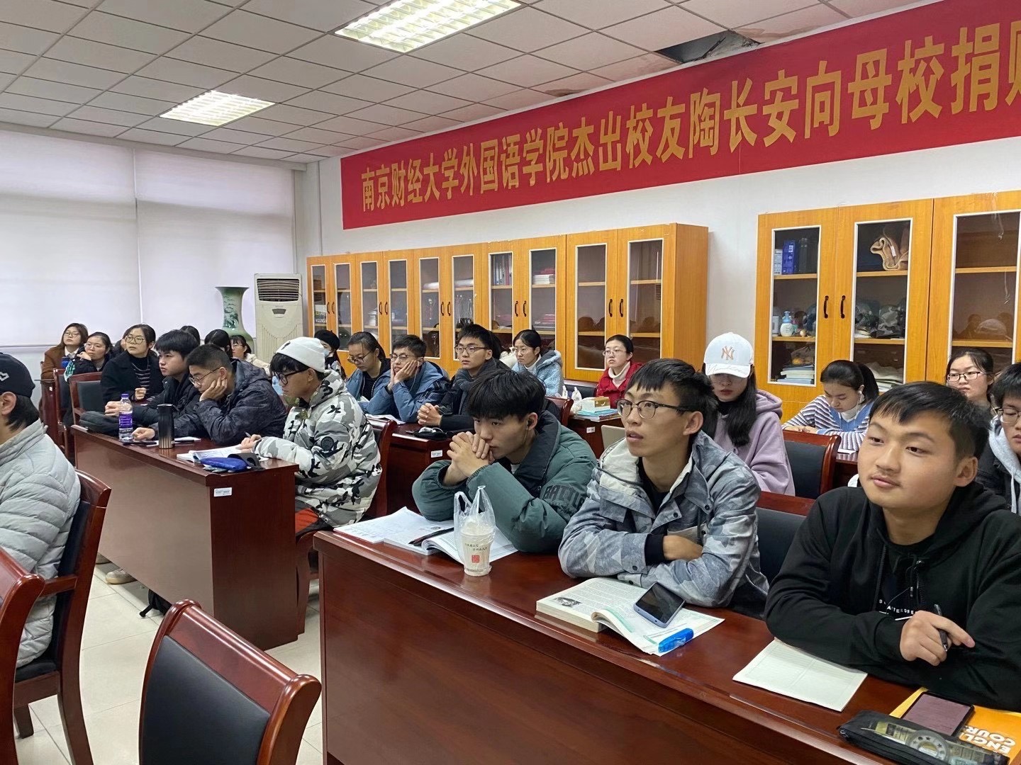 仪式结束后,陶长安校友给体育直播平台 全院毕业生做题为“新时代青年的跨文化素养”的讲座,他指出新时代呼唤跨文化的汇聚融合与创新,既要“跨古今”,又要“跨中西”,凝聚起当代文化人的责任担当与思想力量。随后,陶长安校友全面介绍了蓝鲸培训学校有限公司的发展理念和前景,热切希望有新坚力量的加入,并针对体育直播平台 应届毕业生开展专项招聘活动。