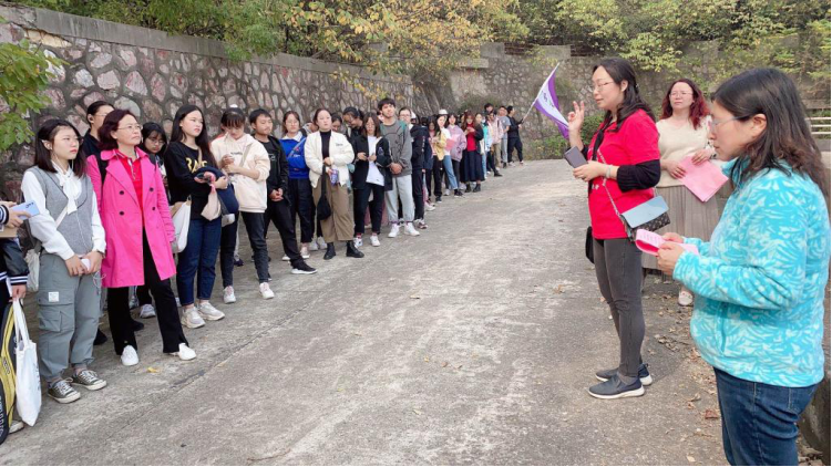 唱响祖国赞歌,熔铸民族之魂。在模拟长征的过程中,没有一位师生中途掉队,几公里的路程,记录了师生们这一程的汗水和坚持,也拉近了师生之间的距离。英语1802班任昕说:“我们今天轻装上阵仅仅是徒步走都难以坚持,时光若能倒流,在那烽火连天的岁月,背着沉重的行囊快速前进,那又将会是怎样的一次人生经历?原来长征精神永远在人生路上。”由法语2001班学习委员李炜玮动情领唱、全体师生合唱的《我和我的祖国》,更是将此次徒步环校行活动推向了高潮,悠悠爱国歌声回响在半山腰,让大家体验了一次深刻、生动的红色教育洗礼。