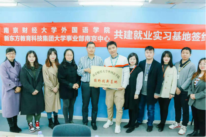 座谈会后,体育直播平台 党委书记李骏与新东方教育科技集团大学事业部南京中心运营支持高级经理施洁分别代表双方单位签订校企合作协议书,并举行“校外创新基地”授牌仪式。