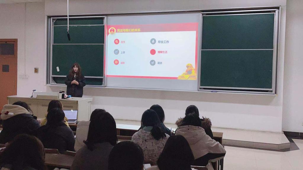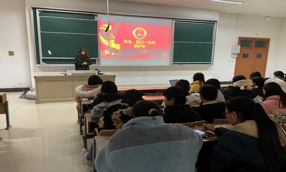 12月15日晚,体育赛事直播 在博观楼310举办了一场题为“大学生知宪学宪的必要性”的宪法知识讲座,特别邀请法体育直播平台 优秀学生孙一盈为2020级全体学生讲述大学生知宪学宪的必要性,孙一盈同学先从生活出发引申向宪法规定的权利和义务,讲座内容丰富有条理,回忆自己从知法到懂法的过程,用自己的经历讲述宪法的重要性,并且通过举例给同学们阐释了“生活处处是宪法”的含义,孙一盈同学的讲述生动有趣,举例贴近生活,如:已成年的大一新生享有选举权与被选举权;在毕业后,学生会有自己的工作岗位,需要法律维护权益;婚姻以及婚后财产等等都需要婚姻法的保护等,她用简单而“接地气”的话语告诉大家:宪法时刻围绕在我们身边。同时,作为一名法学专业的学生,孙一盈同学用自己的专业知识为我们深刻讲述了知宪学宪的必要性,人人都应尊崇宪法、学习宪法、遵守宪法,作为新时代的青年人应该加强法律意识。同学们听得津津有味,对宪法有了更加深刻的认识。