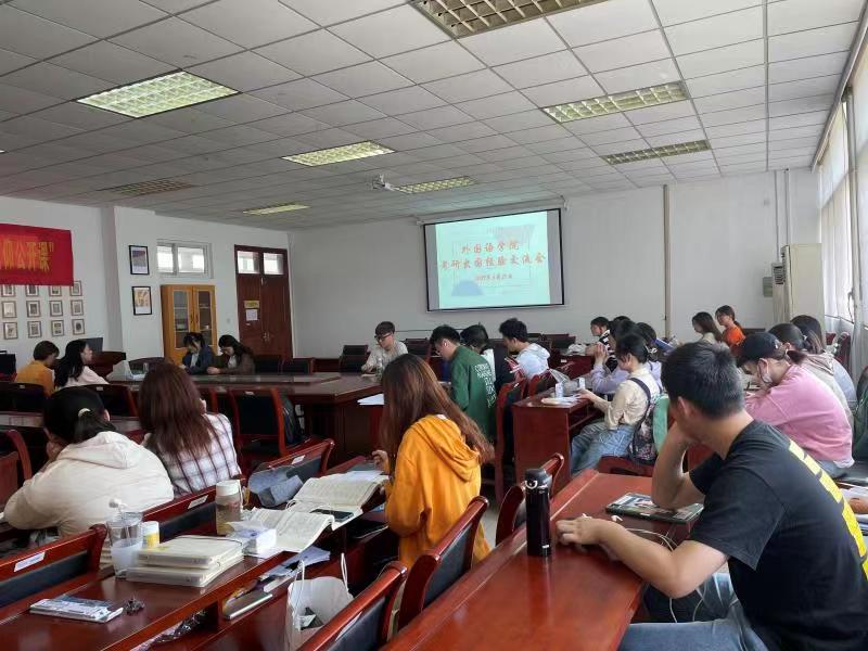 5月21日上午9点,体育直播平台 2021届毕业生考研出国经验交流会在德正楼308会议室召开。会议由院党委副书记刘英华主持,2018级部分学生参加。