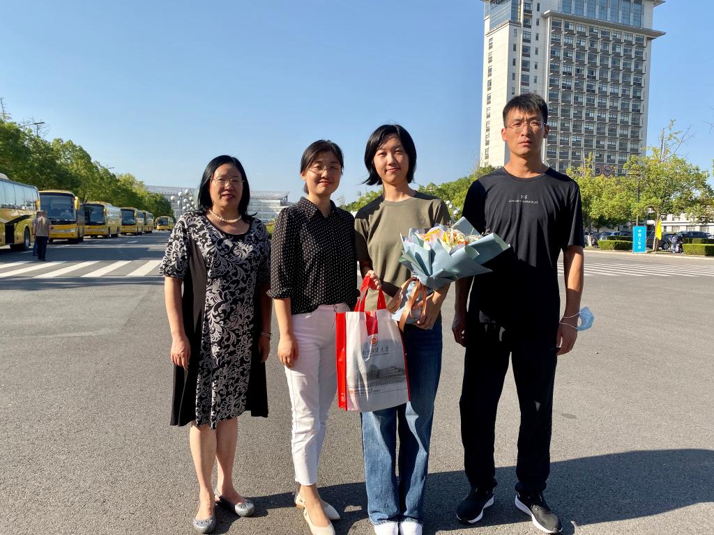 9月23日,来自北京的李熹颜回到阔别两年的学校进行复学报到,“刚踏入校园,体育直播平台 的老师和同学们就给我送来了鲜花和学习用品。”这让刚返校的李熹颜感觉很温暖。体育直播平台 党委副书记刘英华和李丽萍老师送上鲜花祝贺她开启人生新阶段,校人武部办公室王利涛老师赠送书籍和学习用品,希望她持续点亮自己精彩的人生。“接过你的行囊,我们便是一家人。”辅导员黄婕用浓浓的关爱让李熹颜倍加欣喜。