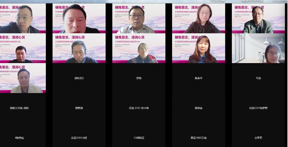 12 月4 日下午,会议邀请到了南京大学杨金才教授、南京航空航天大学范祥涛教授、南京理工大学赵雪琴教授、河海大学张海榕教授和蔡斌教授、南京工业大学陈世华教授、南京特殊教育师范体育直播平台 徐琴芳教授等专家,他们就英语专业建设提供了各自的真知灼见。在蔡斌教授和赵雪琴教授的主持下,孙勇彬院长介绍了体育赛事直播 英语专业近年来在专业建设方面所做的工作和取得的成果。杨金才教授提出外语教师应该紧跟时代发展步伐,积极主动学习党的最新方针政策,并融入自己的教学与科研之中。他向与会代表讲述了自己学习党的十九届六中全会的体会。范祥涛教授指出教师要贴近疫情实际,设计教学,鼓励同学们勇于担当,增强爱国情怀和责任担当意识,鼓励同学深入思考当前疫情局势、提升众志成城精神。张海榕教授指出课程思政必须落实立德树人的根本任务,将价值塑造、知识传授和能力培养三者融为一体,形塑学生的爱国情怀、诚实守信和历史担当。 陈世华教授认为将国外马克思主义前沿理论纳入英语专业课程教学,是践行“思政进课堂”的有益尝试。徐琴芳教授详细地介绍了思政教育与心理教育相结合的做法,明确了教师在教书育人中的重要作用。