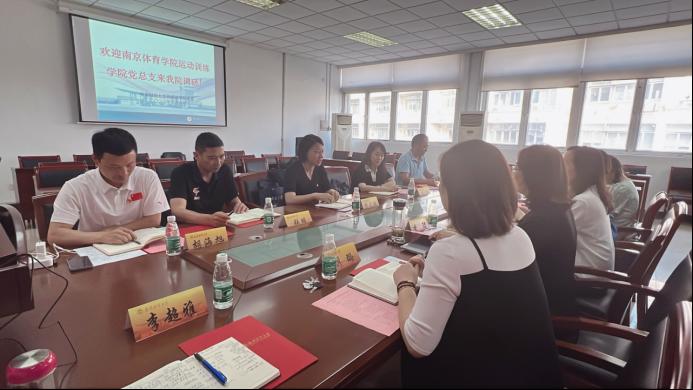 6月6日下午,南京体育体育直播平台 运动训练体育直播平台 党总支书记葛见珠、副书记杨蓉、副院长张明等一行5人来体育赛事直播 调研交流。体育赛事直播 党委书记李骏、副书记刘璐、院长助理顾晓燕、教工第一党支部书记陈芙蓉、本科生党支部书记李超雅、研究生党支部书记吴玉娟参加了座谈交流。座谈会由院党委书记李骏主持。
