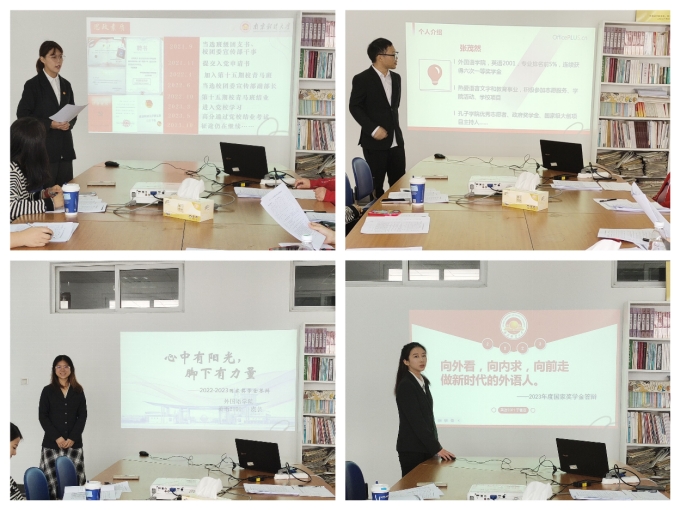 经过前期个人申报和体育直播平台 初审,本次共有来自英语2001班、英语2101班的4名候选人进入最终的评审环节,现场按照抽签顺序依次进行答辩。4位候选人分别从思想道德素养、学业科研、国内外交流、社会实践与志愿服务、文体创新等方面取得的成绩进行全面展示,向评委以及在场的同学们展现他们在校期间的成长经历和收获。