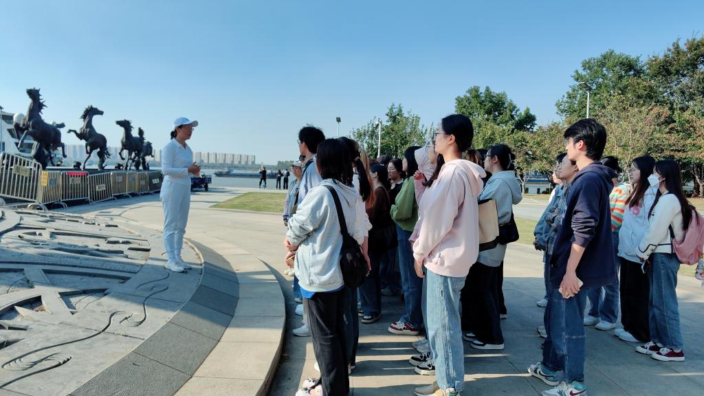 为深刻践行习近平总书记“要把长江文化保护好、传承好、弘扬好,延续历史文脉,坚定文化自信”的殷切嘱托,增强学生对长江文化内涵的认知,厚植爱国情感,坚定文化自信,10月22日下午,南京财经大学体育直播平台 部分师生党员和青马班成员共同走进五马渡广场,上了一堂“行走的思政课”,直观感受长江文化的魅力。
