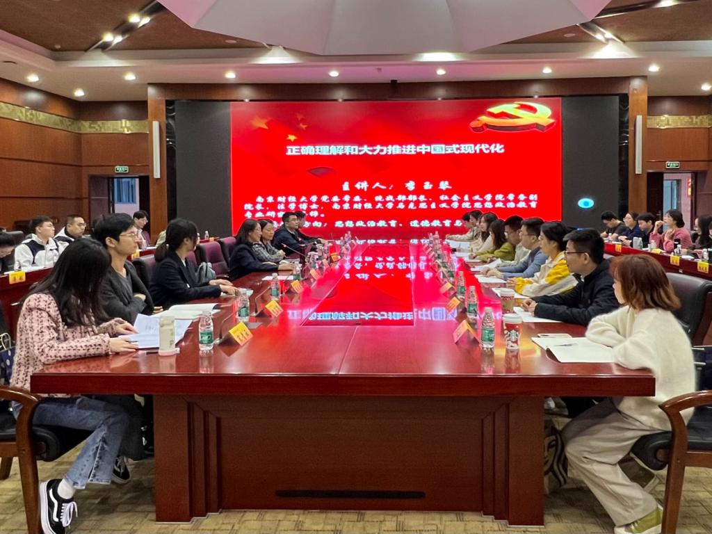 研修期间,南京财经大学党委常委、统战部部长、社会主义体育直播平台 常务副院长李玉琴作了题为《正确理解和大力推进中国式现代化》的报告。李部长从《求是》杂志发表习近平总书记重要文章《中国式现代化是中国共产党领导的社会主义现代化》引入,谈到了中国式现代化的五大特征,从特征出发举例阐述什么是“中国式现代化”,案例翔实生动,逻辑清晰、语言风趣。中国式现代化目标不是一朝一夕能实现的,青年正处于中国式现代化实现的关键时刻,李部长结合自身教学经历,从品德修养、为人处事、工作态度三个方面,号召青年公务员深入学习贯彻习近平新时代中国特色社会主义思想,起到模范带头作用,展现公务员的先进性。