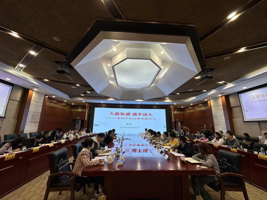南京航空航天大学马克思主义体育直播平台 党委书记、教授、博士生导师徐川以《人能弘道,道不远人——走进中华优秀传统文化》为主题,聚焦中华优秀传统文化,畅谈瞄定文化自信自强,推动构建中国自主知识体系和话语体系。徐川教授的讲座深入浅出、幽默诙谐,使学员们对中华优秀传统文化有了更加深入的理解和认识。
