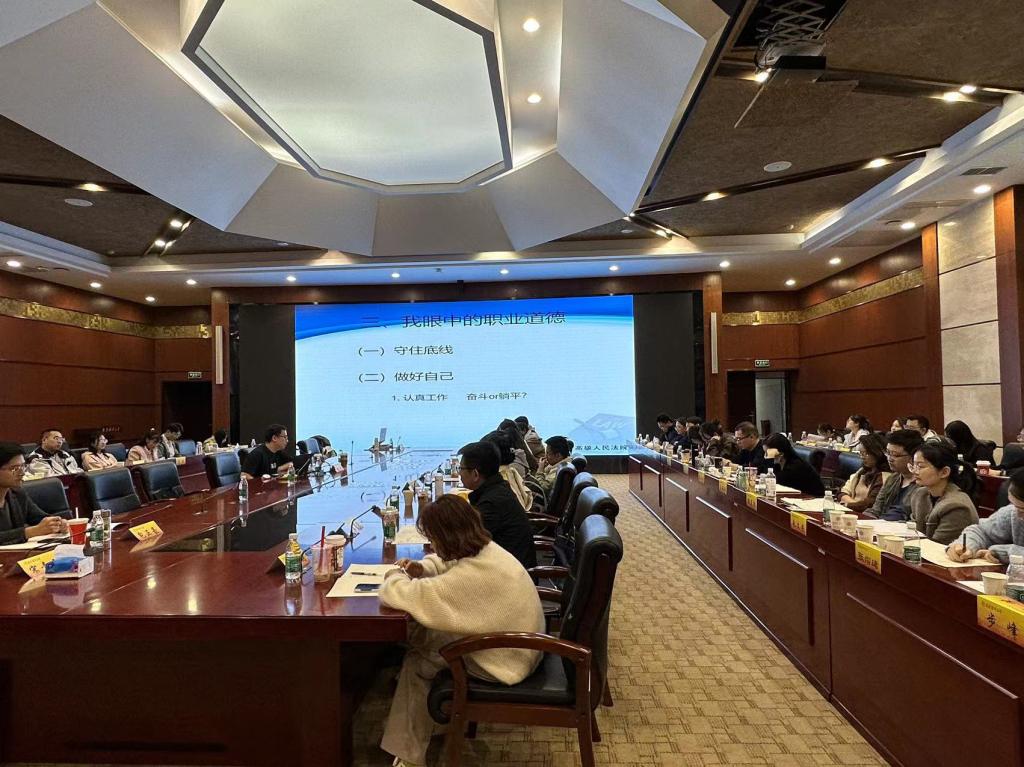 江苏省高级人民法院高级法官赵俊以《公务员职业道德》为主题,从守住底线、做好自己、积极担当等方面为各位新录用公务员做了授课辅导。讲座内容丰富多彩、生动活泼,使同志们对进一步加强公职人员职业道德建设的重要性和必要性有了更深刻的认识,对自觉加强职业道德修养、提高职业道德素质,具有重要的启发和指导意义。