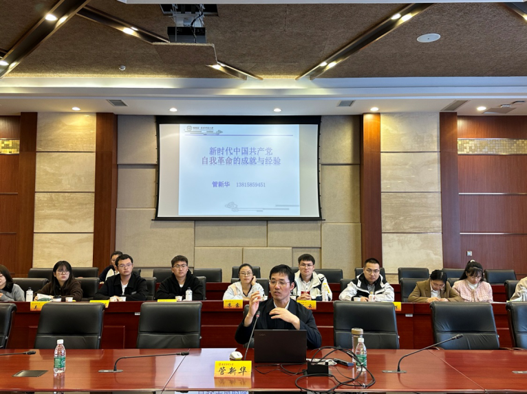 南京师范大学马克思主义体育直播平台 管新华教授以《新时代中国共产党自我革命的成就与经验》为主题,从为什么要自我革命和为什么能自我革命的角度,阐述了我们党在历史新征程上的新的历史使命,并指出,每一位党员同志都需要时刻自我反省、自我革命,不忘初心、牢记使命,只有这样才能把我们党建设成为始终走在时代前列、人民衷心拥护、勇于自我革命、经得起各种风浪考验、朝气蓬勃的马克思主义执政党。