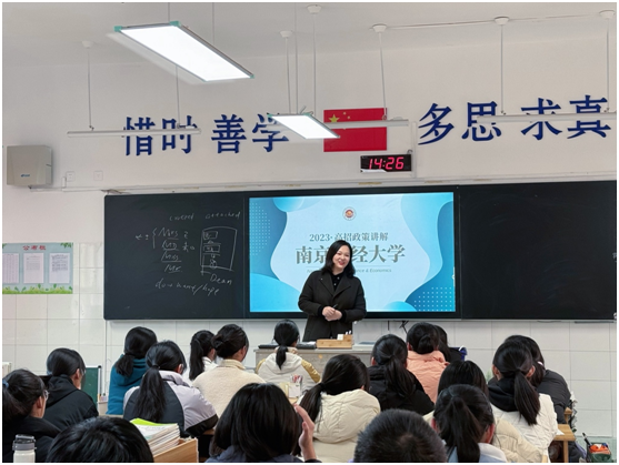随后,体育直播平台 大学商务英语系教师邹逸君以“国际学术英语交流”为题的金课向高三毕业班学生作分享。邹老师以国际信件交流为例,从英文邮件书写的格式、规范及句子的使用和表达等方面,给同学们进行了细致的讲解和分析,不仅激发了同学们英语专业学习的热情,更鼓励同学们厚植家国情怀、探索语言之美,加深对国际传播能力建设背景下“语言桥梁”作用的理解。党委副书记刘璐就我校概况、办学特色、招生政策作分享,对于同学们所关注的志愿填报、职业生涯规划等问题,也逐一作出了详细回答。招生宣讲活动现场活动氛围热烈,引起中学老师和学生的积极反响,取得了良好的招生宣传效果。