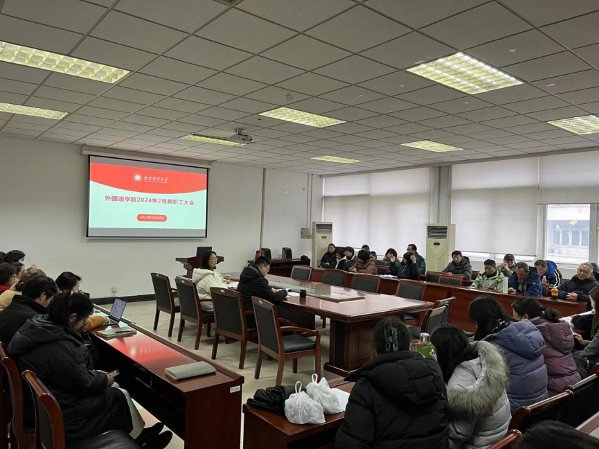 李骏书记传达了新学期学校工作会议精神,重点解读了学校新学期工作要求,并对近期体育直播平台 安全工作进行了部署。李骏书记强调,新学期体育直播平台 要重点围绕党的建设、师德师风建设、网络教育、社会培训等方面营造更加风清气正的氛围、更加团结协作的精神和更加创新有为的干劲,共同创造一个积极向上体育直播平台 。丁强副院长(主持工作)汇报了体育直播平台 当前人才引进与师资队伍建设、科学研究与学科建设、职称评审、专硕申报等方面的情况,肯定了全体教师在过去一年取得的成绩,希望在新的学期全体教职工能发挥特长与优势,同心戮力、提振信心,以昂扬的斗志、团结拼搏的精神,切实履行好外语人的职责,确保体育直播平台 在新的一年里各项工作再上一个新台阶。