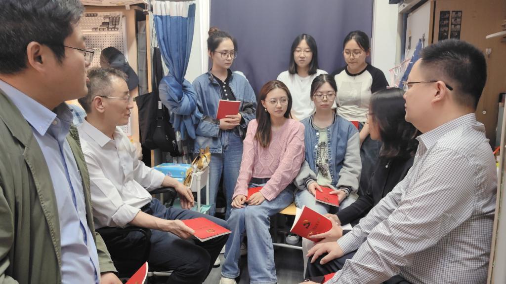 送纪进宿舍。4月25日下午,纪委办公室主任、体育直播平台 本科生党支部政治辅导员丁书俊、体育直播平台 党委书记李骏、副院长(主持工作)丁强、党委副书记孙大松、本科生支部书记李超雅一行深入仙林校区5号宿管站27栋101党员宿舍,将纪律教育“触角”延伸到“一站式”学生社区。丁书俊主任带领宿舍党员们共读《共产党员纪律必修课》,以“面对面”的形式与师生党员开展“党的纪律规矩是什么,能干什么,不能干什么”大讨论,鼓励学生党员亮身份、尽义务、谋作为、树榜样,成为理想信念坚定、政治素养过硬、综合能力突出的“红色种子”,并充分运用好“一站式”学生社区等载体,以先进促后进,以典型带全体,将党纪学习教育“纵到底、横到边、全覆盖”,真正实现“一名党员一面旗帜”的工作效果,努力担当起青年人的使命。
