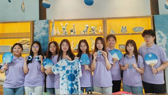 活动伊始,手工艺人向同学们介绍扎染的历史、艺术特征和应用范围、染液的成分、扎染的基本技法,“扎染工艺分为扎结和染色两部分,通过线、绳、皮筋等工具,对织物进行扎、缝、缚、缀、夹等多种形式组合后进行染色。”扎染手工艺人一边向学生讲解,一边分发笔、织物、染料等物品。为了给学生带来原汁原味的传统文化和手作体验,此次劳动教育实践活动在体育直播平台 优秀校友石贤的“从黔故事”民族文化生活馆中开展。白色的短袖、方巾、扇子和发圈是此次扎染和刺绣的材料,在学习了扎染的基本知识和具体步骤之后,各组同学自行构想出各自扎染主题并进行创作。在手工艺人的耐心指导下,同学们全身心投入到扎染制作中,大胆设计,细心琢磨,认真落笔,有的按照图样精准操作,有的则放手一搏,展现个性风采,巧妙地折叠、捆扎,在染缸中完成染色后,解开捆扎,呈现出层次分明、色彩斑斓的扎染艺术品。漆扇制作也吸引了众多学生的参与。同学们亲自体验调漆、滴漆、拨纹等步骤,在扇面上描绘春天,创作出绚丽多彩的漆扇作品。在动手实践中体验传统文化,更让他们坚定了文化自信,做中华优秀传统文化的忠实传承者。