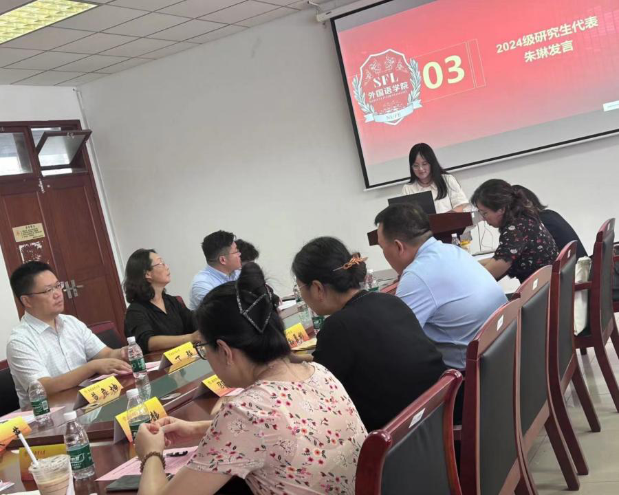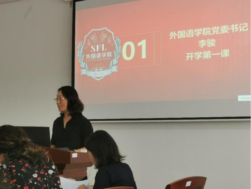 会议伊始,李骏书记以“外语人的困境和出路”为主题,讲授了开学第一课的思政课。谈到了外语专业近年来面临的科技挑战和转型压力,结合教育部提出了新工科、新医科、新农科和新文科“四新”建设理念,指出“外语+”(如英语+金融/经贸/商务/法律/新闻/旅游等)的复合型人才培养才是应对科技挑战的有效手段。当代的大学生特别是研究生,都应当具备独立的思考与探索创新能力。最后,她提出两点期望:一是理念上要紧跟国家经济建设和社会发展需要,既要葆有对语言文学热爱的情怀,又要具备生存发展的能力,使自己过上“既好又美”的生活;二是行动上要充分运用好财经管理类大学的专业学科环境优势,在学好语言技能、文化与思维的基础上,构建“外语+”的能力。