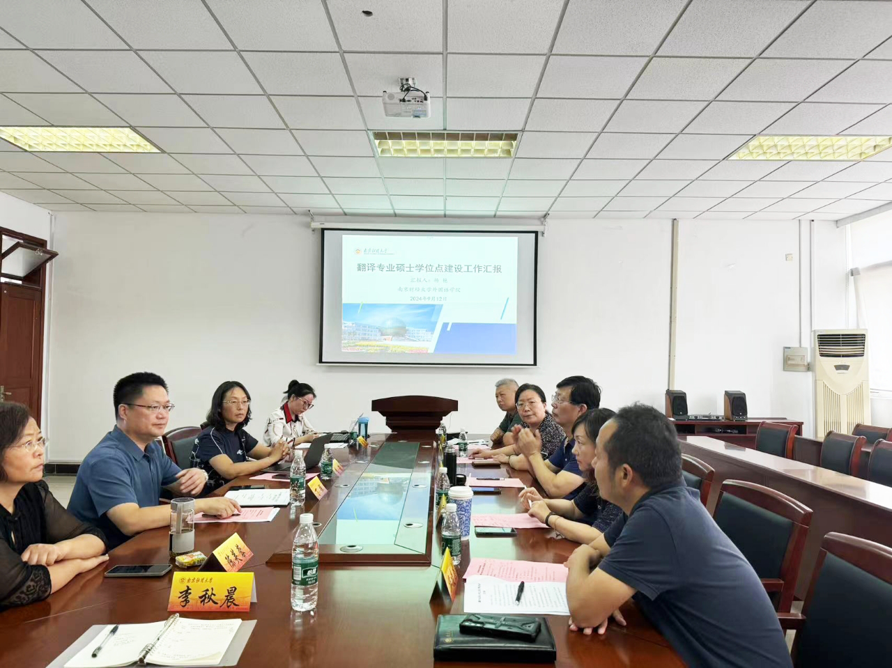 会上,丁院长首先对参会专家表达了诚挚的感谢,高度赞扬了江苏省外语界的团结精神,肯定了各位专家对此次硕士学位点申请成功所提出的宝贵建议。李书记进一步对专家表达谢意并介绍了学位点申请的背景和过程。翻译专业硕士点负责人杨艳从建设基础及特色优势,人才培养定位及目标,建设思路及举措、下一步工作思考等方面对体育赛事直播 翻译专业硕士学位点的建设情况进行了汇报。她指出体育赛事直播 翻译硕士点的建设以新时代研究生教育和社会发展需求为导向,依托学校的财经优势,注重发挥体育直播平台 的专业特长,把语言底色和财经特色有机融合,从而培养出服务于地方经济的“外语+财经”高级复合应用型翻译人才。