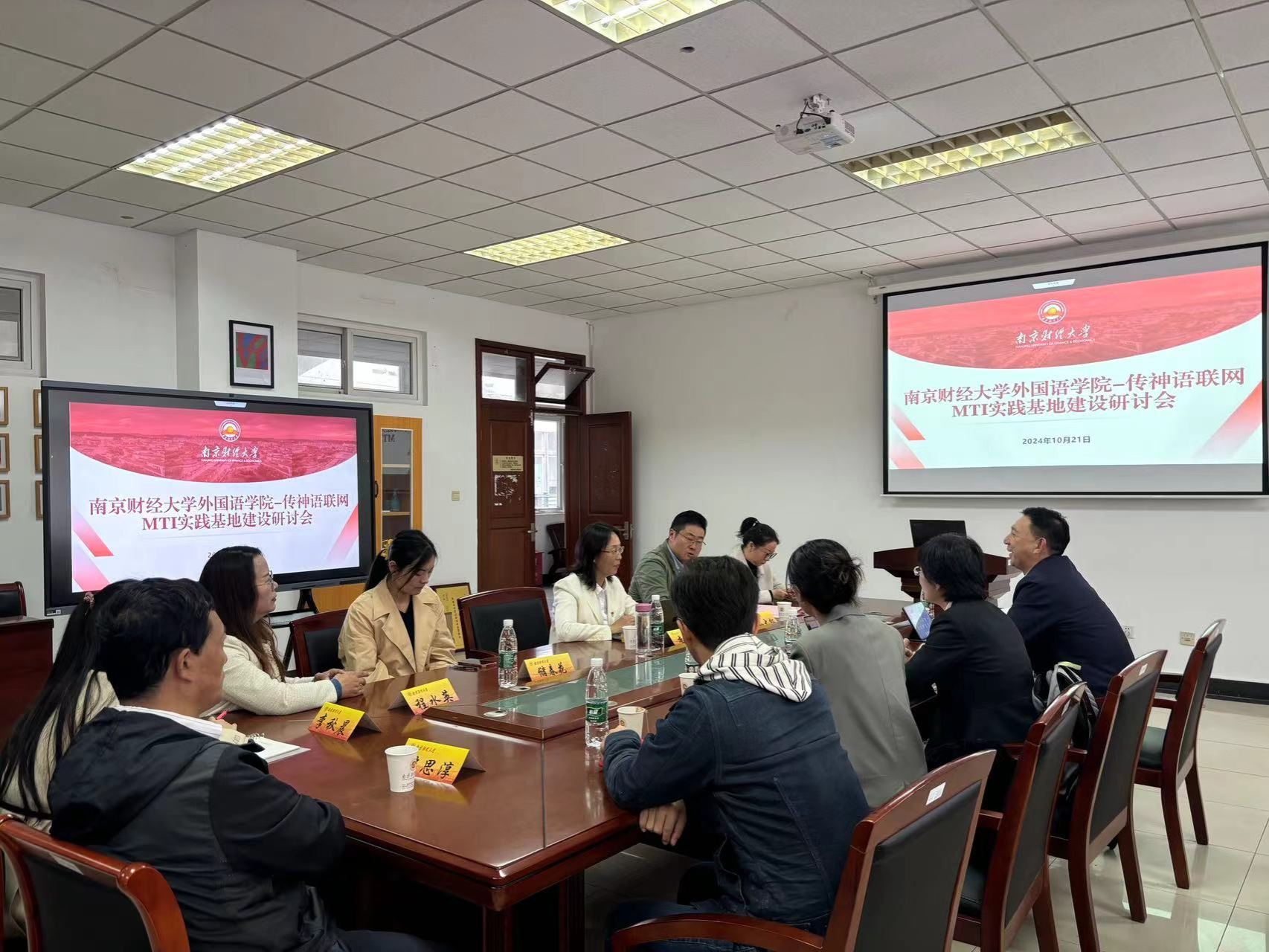 10月21日,南京财经大学体育直播平台 与传神语联网网络科技股份有限公司在德正楼308召开研讨会,探讨MTI实践基地共同建设工作。传神语联网网络科技股份有限公司副总裁闫栗丽,湖南传神总经理左仁君,传神语联网教育事业部江苏区经理祁琪,体育直播平台 党委书记李骏、副书记孙大松、MTI负责人杨艳博士、李秋晨博士、储春花博士、游思淳老师、程水英老师出席了会议。会议由体育直播平台 党委书记李骏主持。