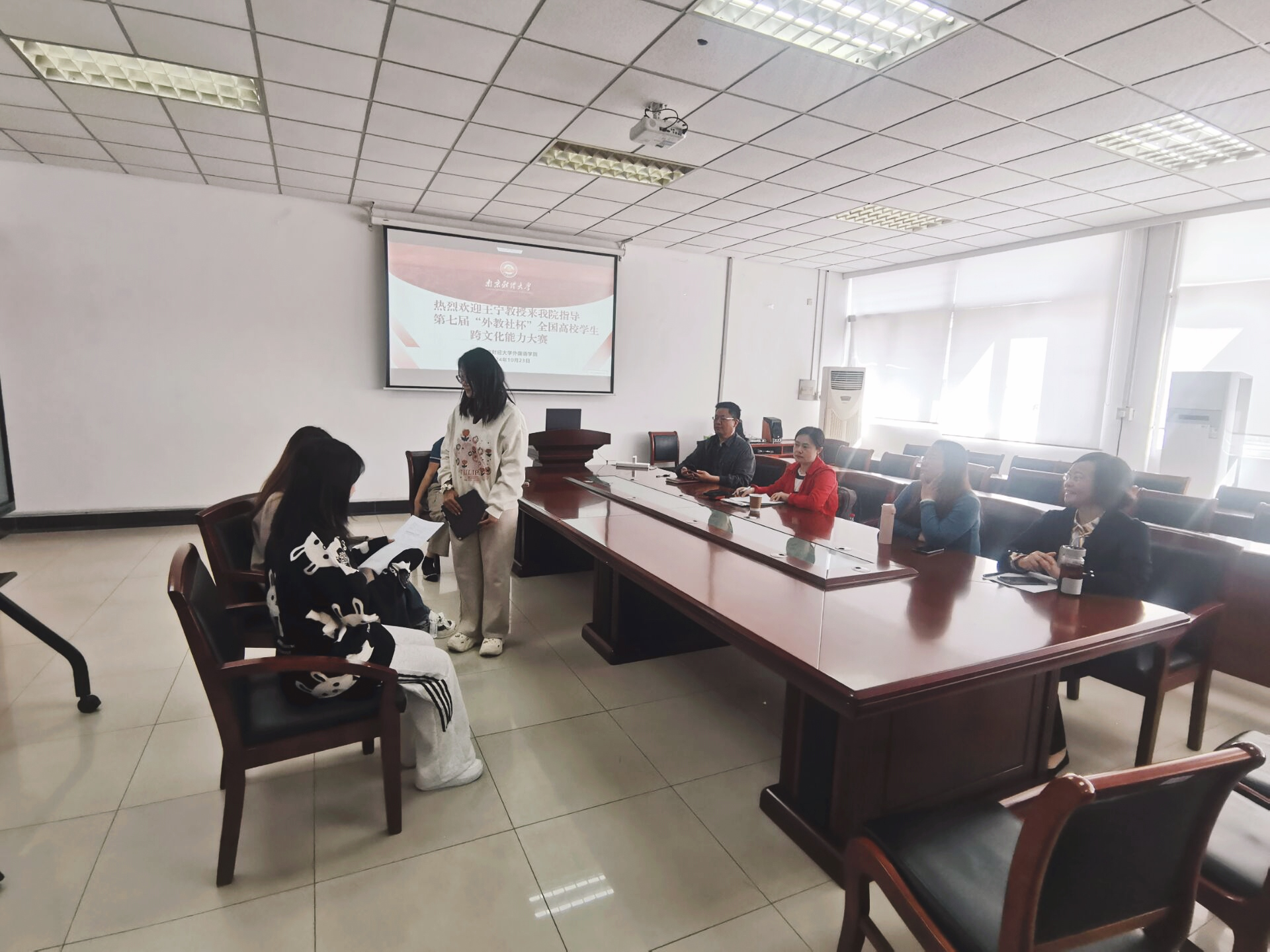 王宁教授首先从内容维度,效用维度和呈现维度这三个维度对我校参赛学生展示的案例进行了剖析。她指出了我校学生所展示的案例在跨文化交际的深度和广度、真实性和原创性,跨文化交际概念和理论运用的深入性与合理性等方面的问题;她还指出了所展示的案例,其跨文化分析是否恰当,提出的建议是否合理,形成的反思是否具有启发性;现场展示是否体现较高的综合素养,是否具有逻辑性、表现力和灵活性等问题。并当场给出了中肯的修改意见。