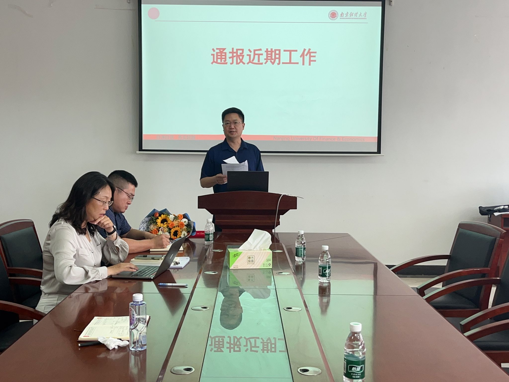 会议伊始,副院长(主持工作)丁强通报了近期体育直播平台 重点工作进展,他回顾了“十四五”期间,外国语言文学一级学科的发展成效与问题,通报了“十五五”阶段的学科建设目标、任务与举措,体育直播平台 将在全面提升人才培养质量、科研创新能力与国际交流水平等方面,力争为学校“双一流”建设贡献外语学科力量。院长助理范晨老师通报了近期毕业论文答辩、期中考试开展情况,对期末考试试卷出题和评阅规范做了详细解析和动员。院长助理杨艳通报了体育直播平台 研究生论文答辩及招生工作进展。